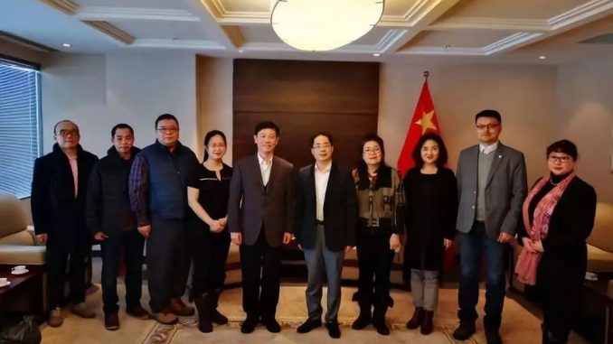 1月30日,陈学明总领事在总领馆会见欢乐春节庙会主办单位华商会主席张仕根及筹委会部分成员,边志春副总领事陪同。